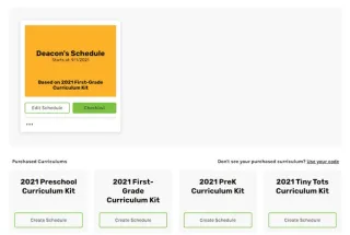 Here you'll find your schedules, activated kits, and a spot to activate additional kits. To activate a new kit, click the "Don't see your purchased curriculum? Use your code" link in the middle of the page, cut and paste in your activation code from your email, and click the green "submit" button. (Don't have an activation email yet? Chat us or check your handbook for activation information.)