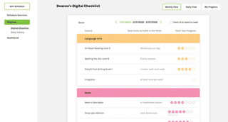 Select Progress on the left menu to access your digital checklist. Check off your work for the week or the day, then click My Progress on the right to see how far you've come already!